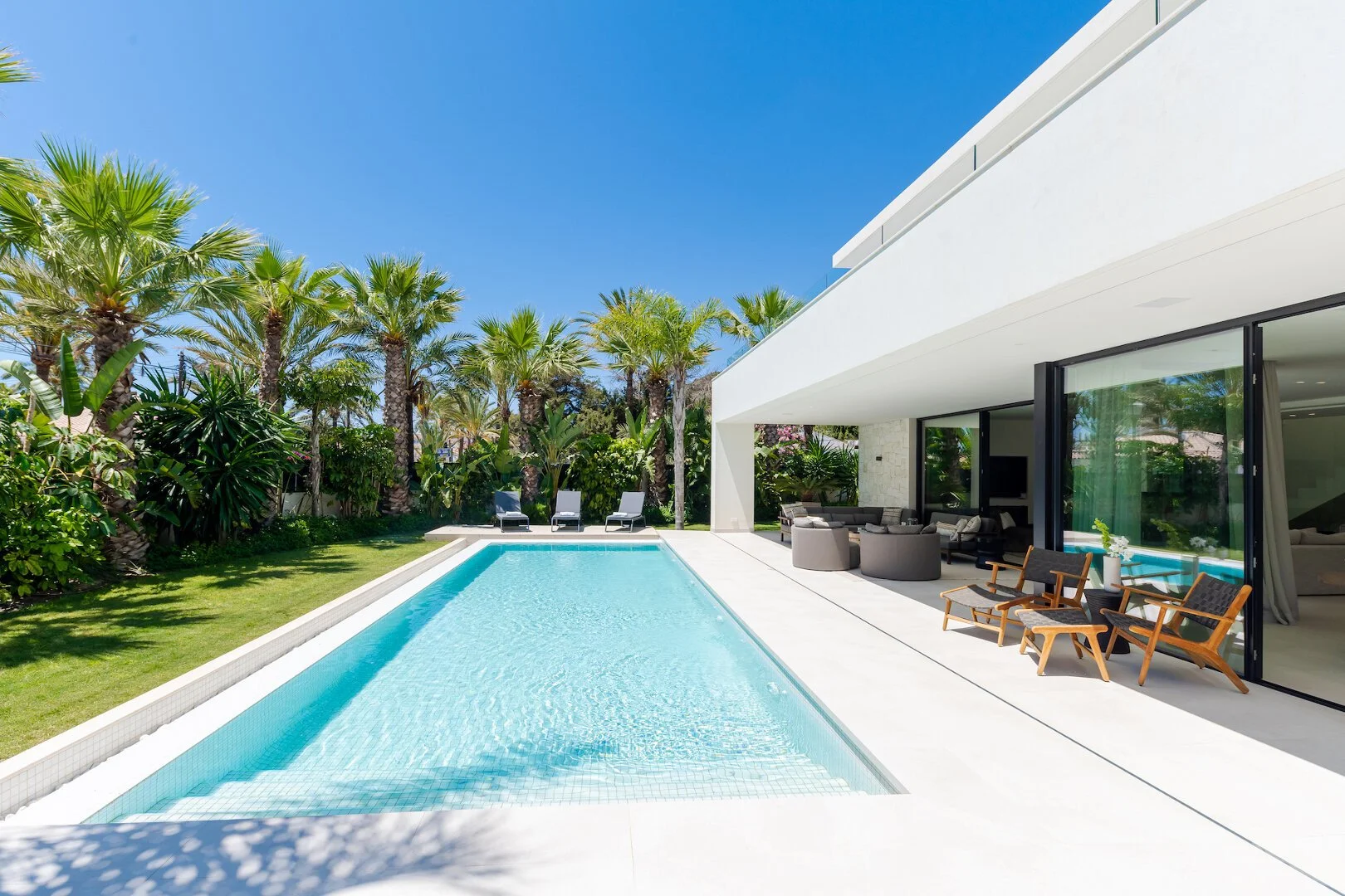 Villa Marbesa is a contemporary, south-facing villa just 50 meters from the sandy beaches of Marbesa, ideally located near Elviria. Built to high standards, this elegant 3-level home offers over 500m² of living space with bright open-plan interiors, high ceilings, and large windows that create a seamless indoor-outdoor lifestyle.